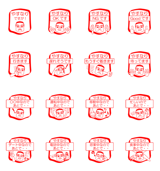 すぐに返信できない時などにも使える、観光地の記念スタンプを押したような呼び名入りスタンプ