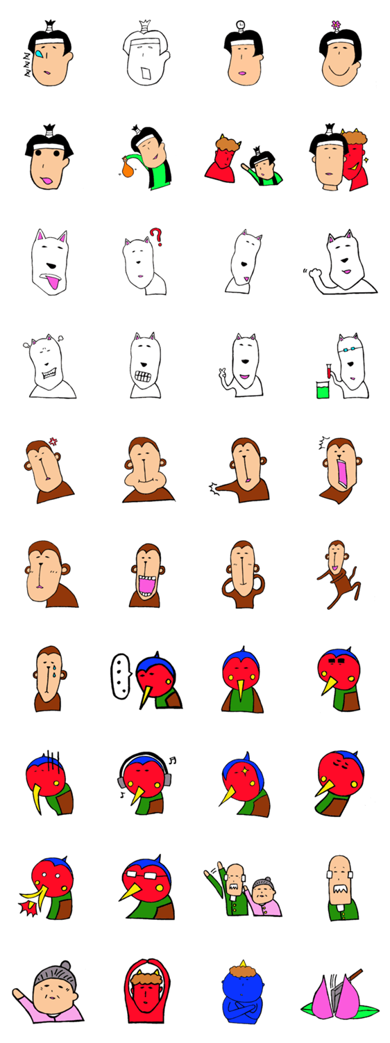 なんだかやる気がなさげな桃太郎一行のスタンプです。
