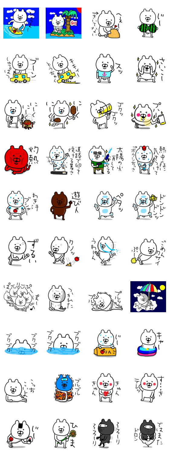 くまが大好きな人のためのスタンプ。夏(さまー)バージョンです。夏以外でも使えるスタンプもあります。