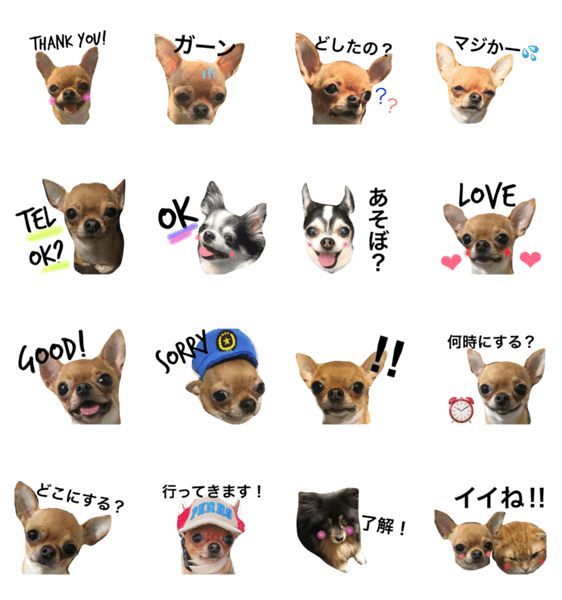 スタンプ説明 スムースチワワのくじらと仲良しワン友達です。