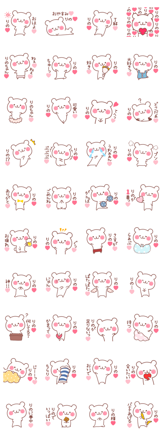 りーちゃん、りっちゃんなど、あなたの大切なりのちゃんへ送ってください。カップルお友達向け名前スタンプ。