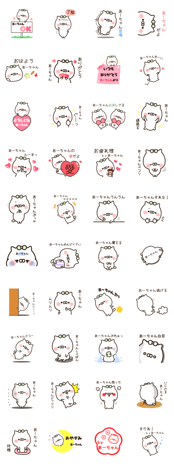 あいちゃん・あやちゃん・あいなちゃん・あすかちゃん・あいりちゃん等、あだ名が『あーちゃん』の方が使える名前スタンプです♪使いやすい言葉を集めました☆