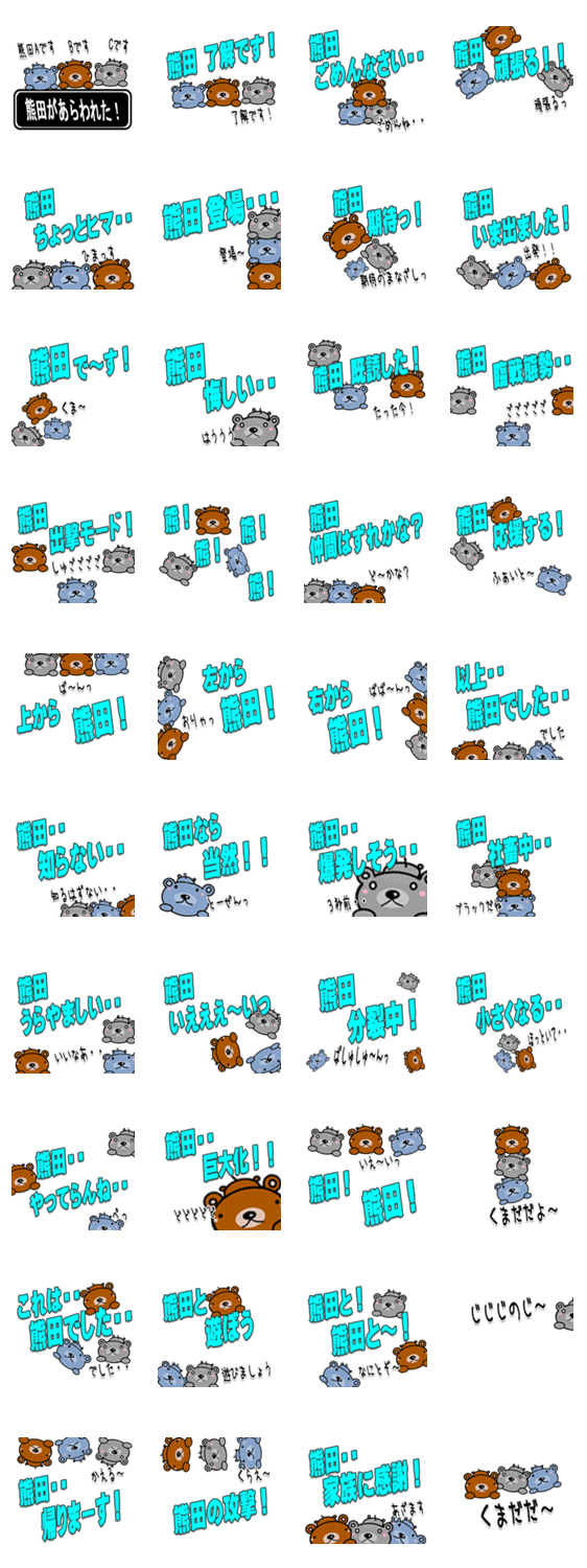 全国の名前、名字、苗字が熊田さん、くまださん、クマダさんのためのスタンプです!