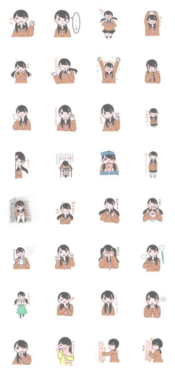 おさげな女の子のスタンプです。 使いやすいものを作ったのでぜひ~
