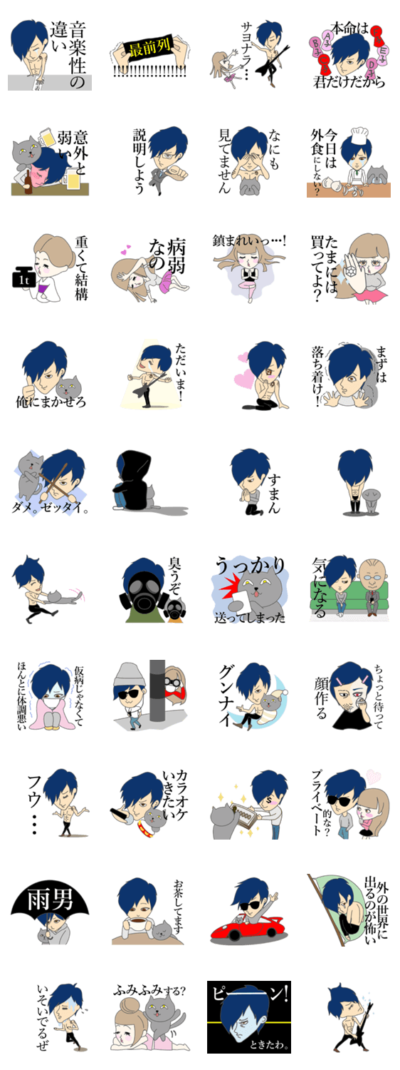 イケメンバンドマン「たつお」とマネージャーの猫の「プラッキー」の日常スタンプ!
