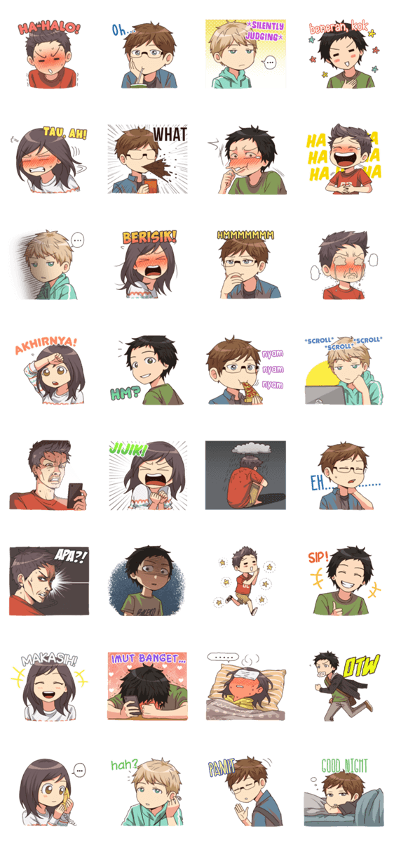 | スタンプ説明 | Characters from Scrambled comic; Filan, Visi, Valent, Hosea, and Axel are ready to make your daily conversation more expressive and fun! |