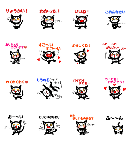 黒猫のノンちゃんスタンプの第五弾です。