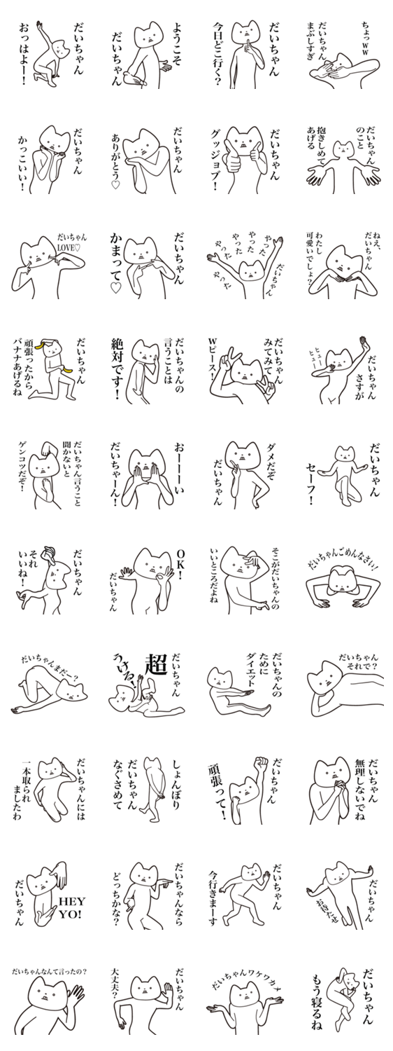 大好きなダイちゃん(だいすけ、だいし、だいと、だいき、だいち、だいご、だいあ、だいじ、だいくん)に送るしゃくれねこスタンプ