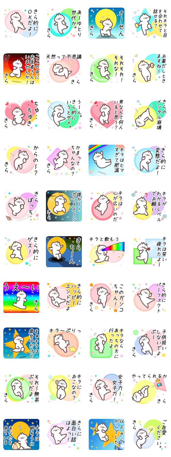 キラ(吉良、綺羅、季楽、生良、季楽、木浪、雲英、貴羅、樹羅、喜羅、希羅、騎羅、紀羅、棋羅、輝羅、葵羅、毅羅、槻羅、嬉羅、喜羅、姫羅)使用するきら専用名前スタンプ