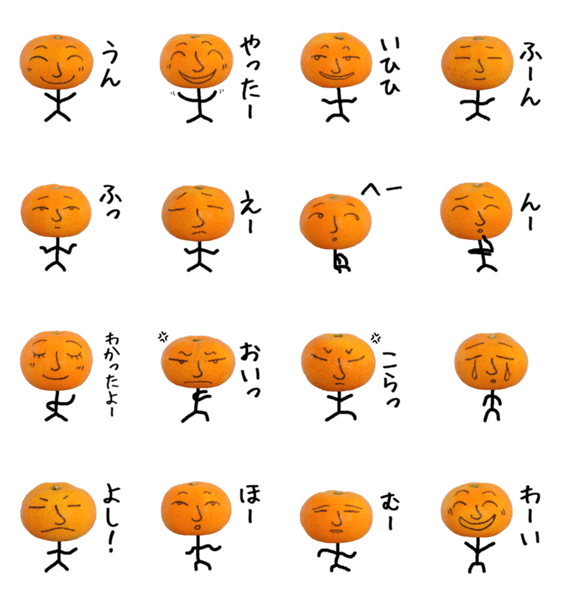 隣にいそうな人をミカンで表現したスタンプ。みかん写真スタンプ最終章!