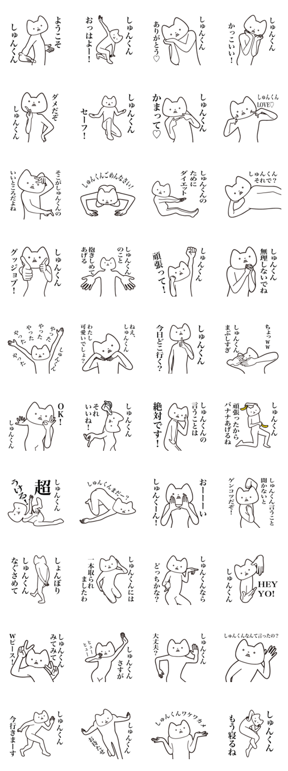 シュンくん(しゅんすけ、しゅんじ、しゅんさく、しゅんたろう、しゅんぺい、しゅんや、しゅんた、しゅんちゃん)に送るしゃくれねこスタンプ