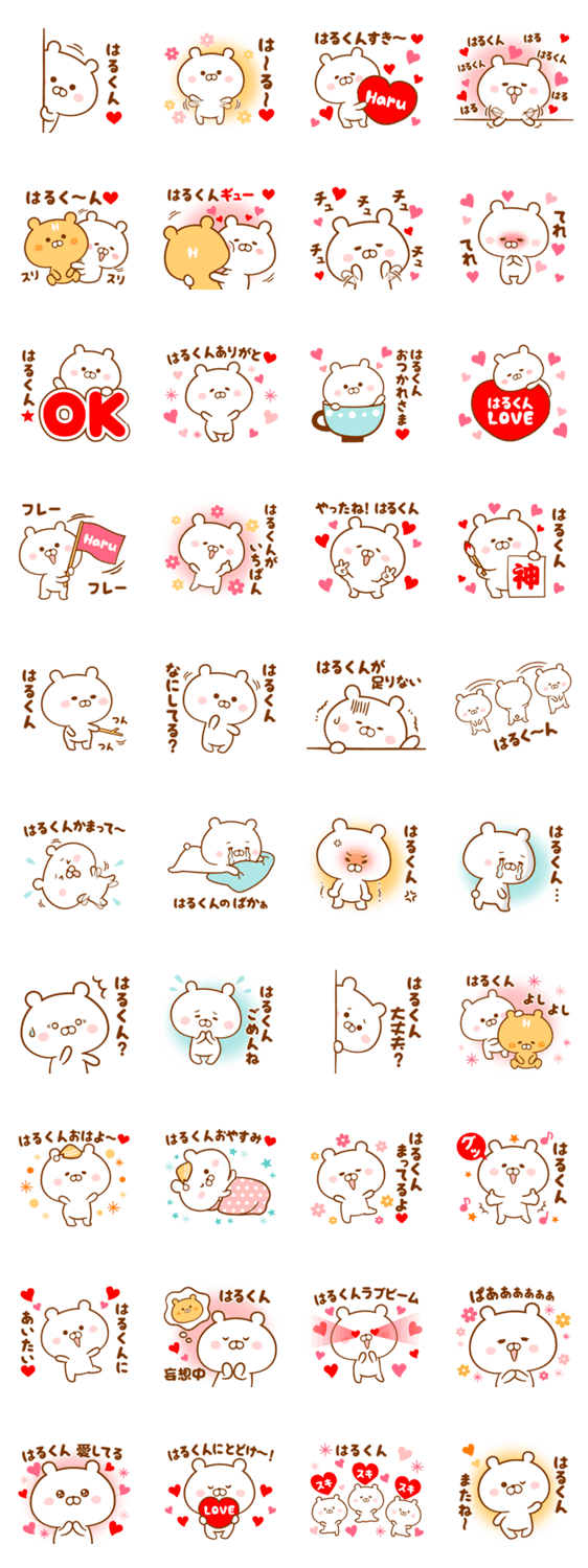 はると/はるき/はるま/はるお/はるひこ/春人/大翔/大斗/悠人/春樹/春馬 等、はるくんに送る名前・あだ名スタンプです。大好きな恋人、夫婦、友達に気持ちを伝えてね♥