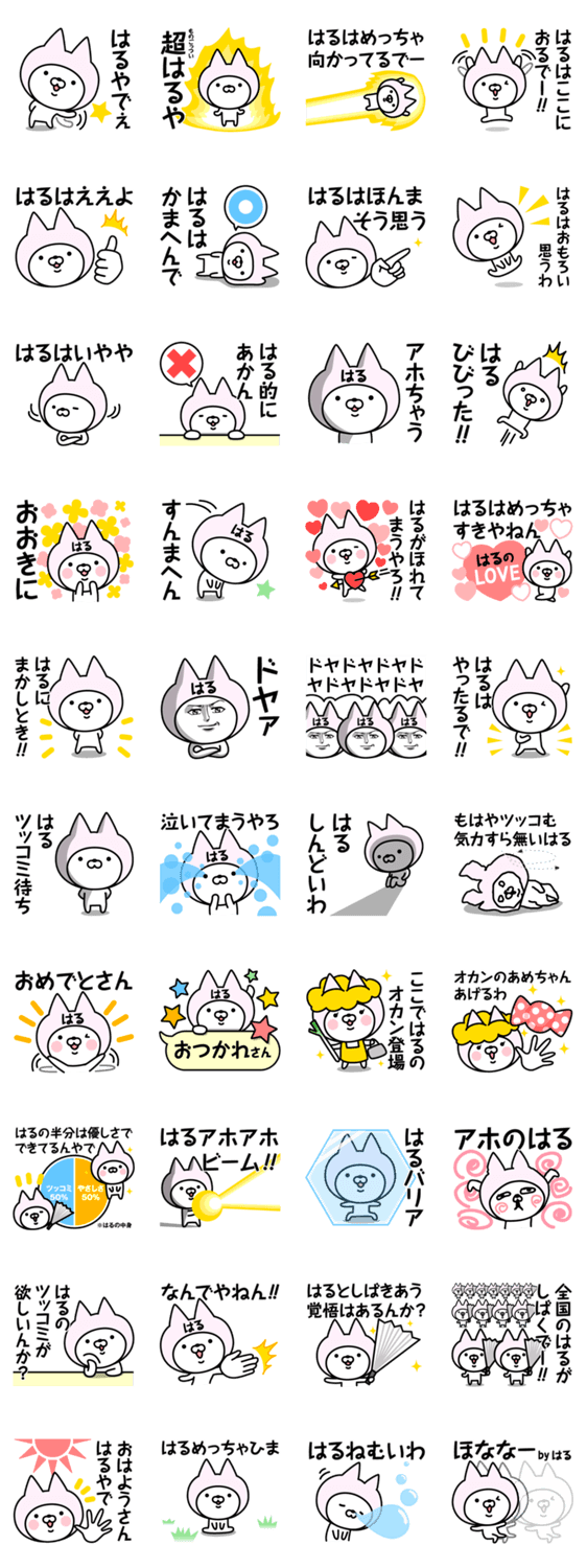 はるさん用の大阪弁の方言スタンプ。ハル/晴/春/波瑠/はるか/はるお/まさはる/よしはる/はるな/はるこ/はるひこ/はるみ/ちはる/はるき/みはる/たかはる/はるえさんは是非。