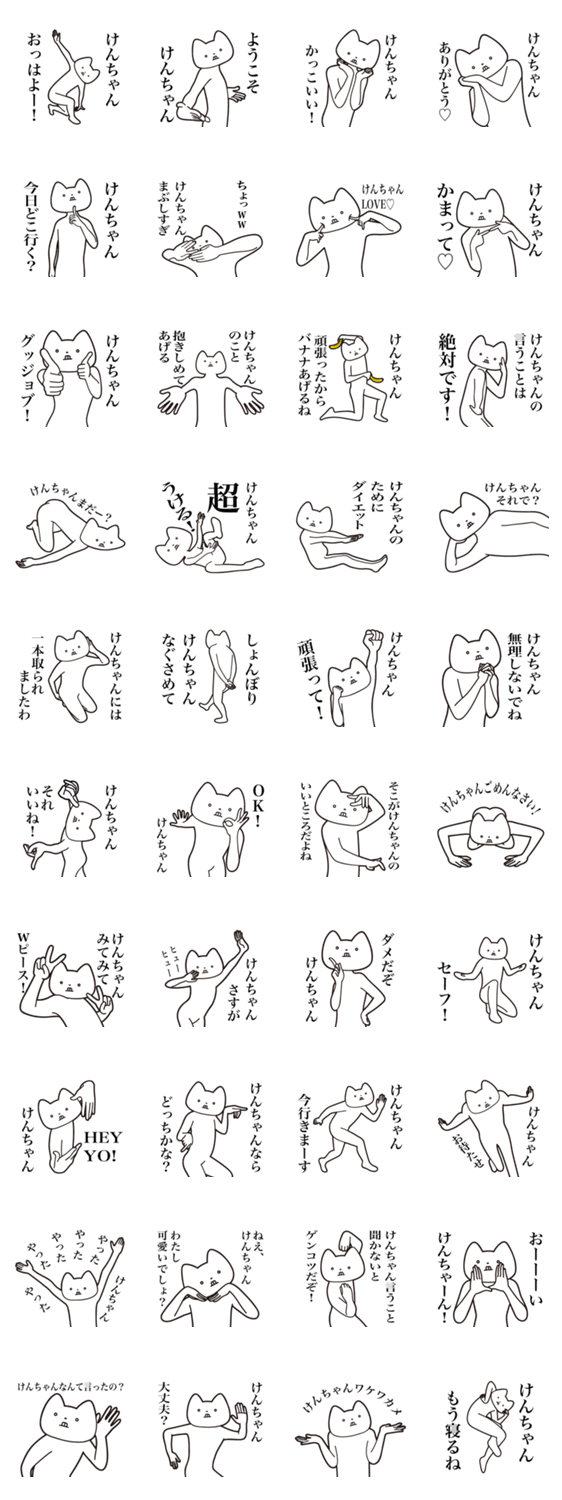 ケンちゃん(けんじ、けんいち、けんたろう、けんた、けんじろう、けんすけ、けんご、けんと、けんさく、けんや、けんせい、けんくん)に送るしゃくれねこスタンプ