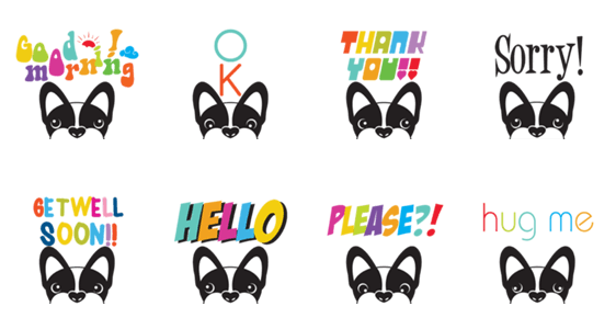 | スタンプ説明 | French Bulldog FRENCHIE Jr. is out to communicate heartwarming thoughts of love. Come and join us! |