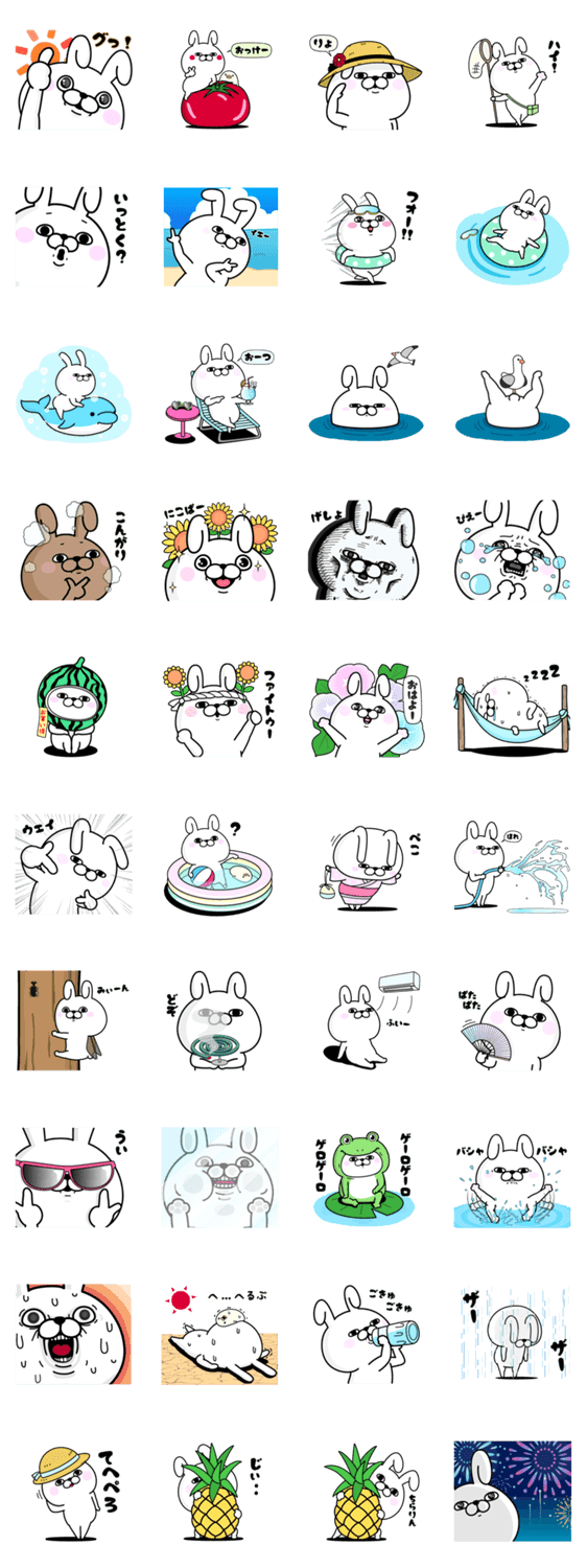 かわいいうさぎさんの夏のスタンプです。 ※ゲスト出演:ひよこさん
