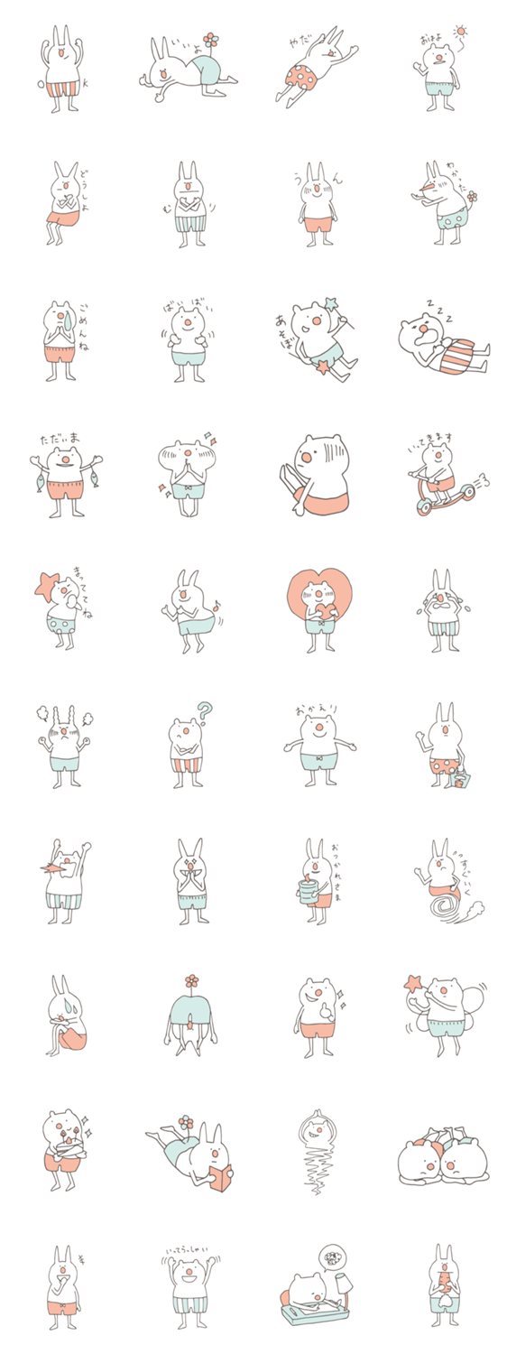 パンツを履いたゆる〜いうさぎたちのスタンプです。会話の一部にどうぞ!