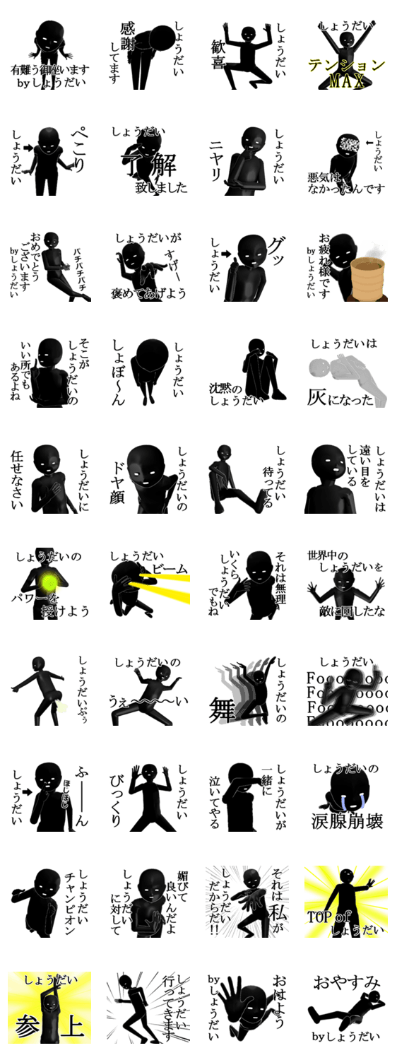 しょうだいさんのしょうだいさんによる、しょうだいさんの為のスタンプです。名前/名字/あだ名シリーズ第1弾。