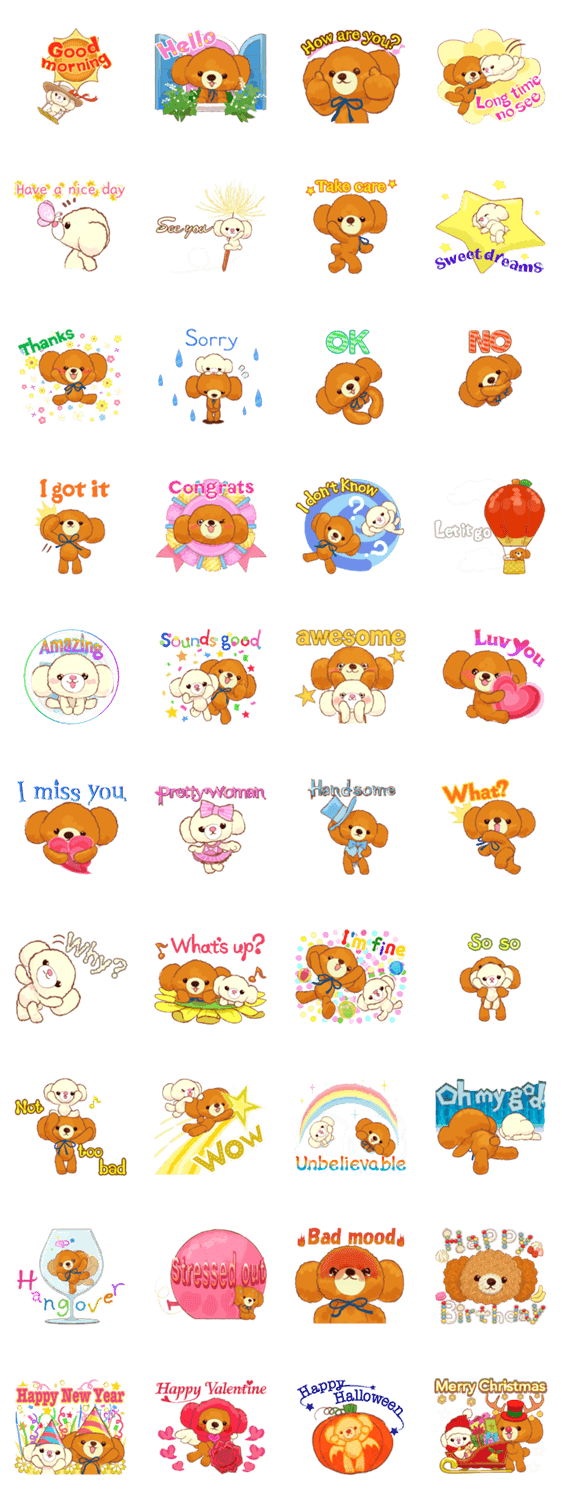 | スタンプ説明 | クマのぬいぐるみ『ココとリリ』のメルヘンスタンプ第三弾は英語バージョンです! 世界にはばたけ『ココとリリ』 |