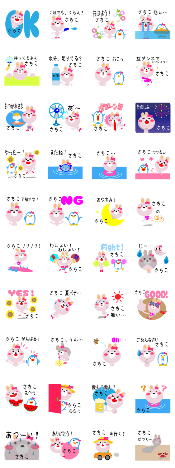 さちこちゃん(さん)の名前スタンプ夏バージョンです! お友達のペンギンちゃんも一緒です♡ しおんのスタンプを宜しくお願い致します。