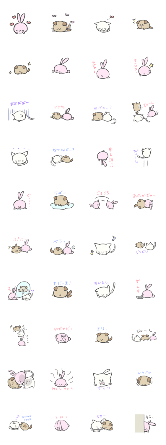犬、猫、ウサギをモチーフにした日常的に使いやすいスタンプです。