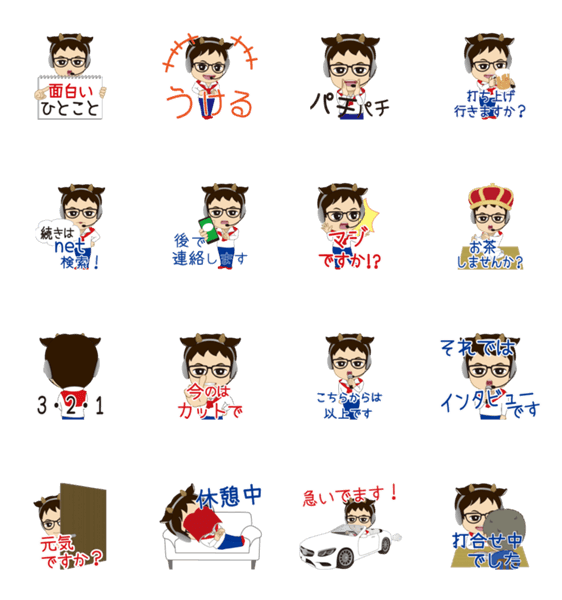 | スタンプ説明 | TV業界の風雲児と呼ばれ、バラエティ番組など多数の人気番組をプロデュースしてきた現役名プロデューサー牛丸謙壱の動くスタンプ! 業界編です。 |