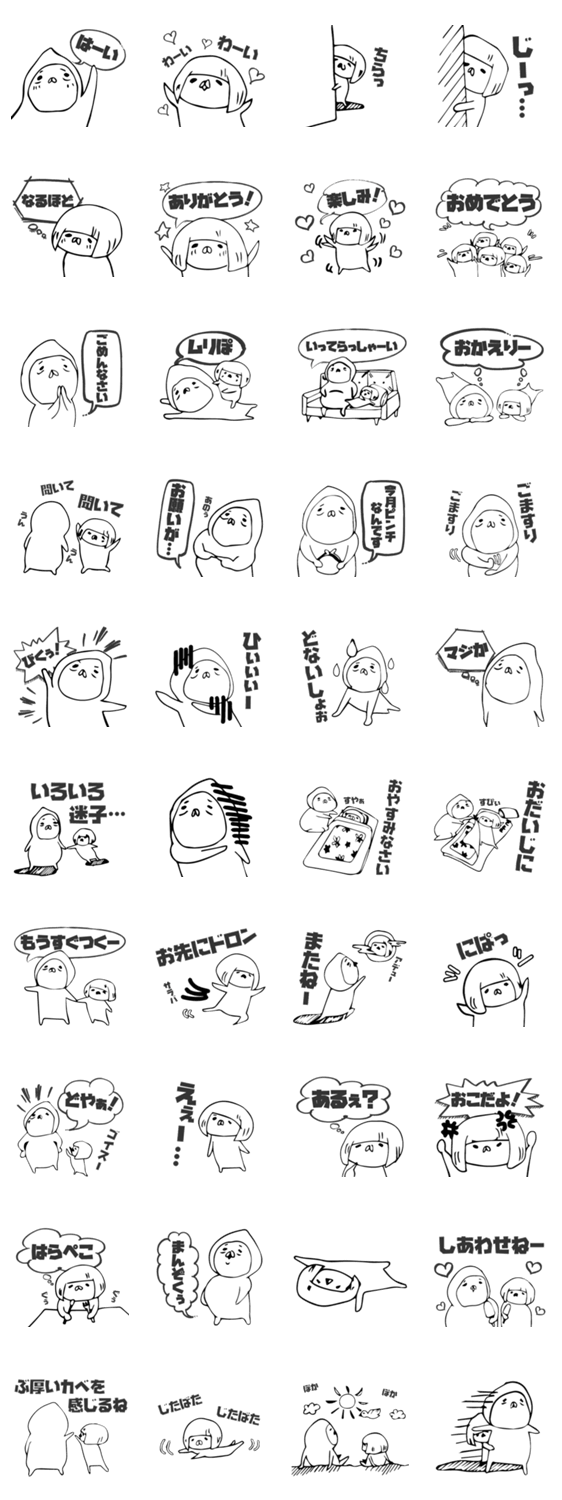 モノクロ世界の住人、しろとくろが楽しく過ごす日常のスタンプ。
