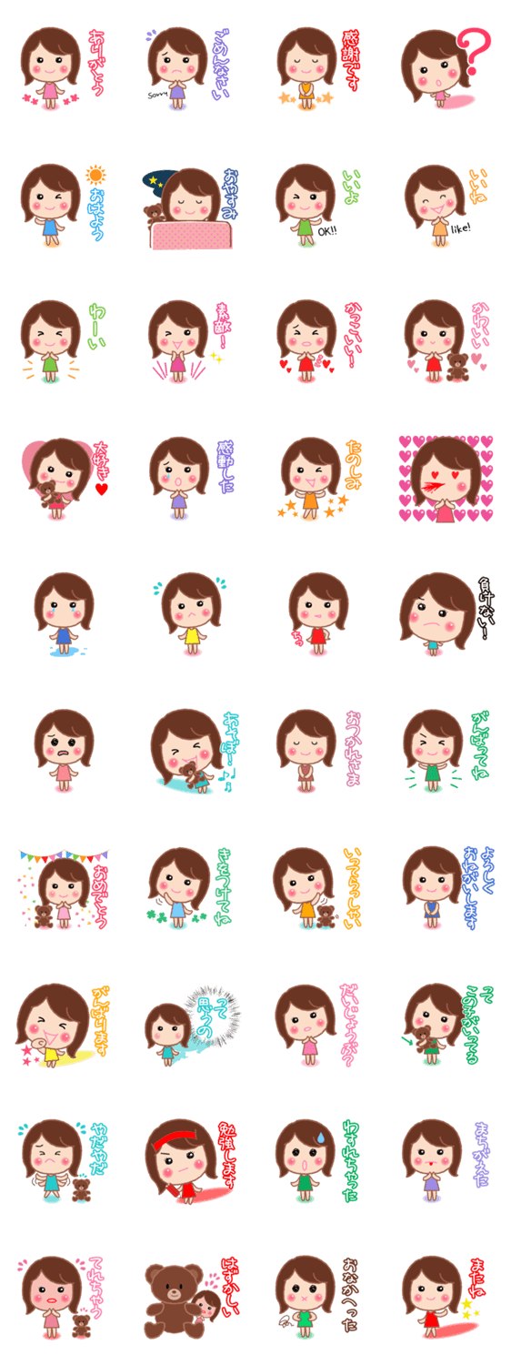 前向きで元気でちょっと天然なおじょうちゃん。 ほんわかする表情のスタンプです。