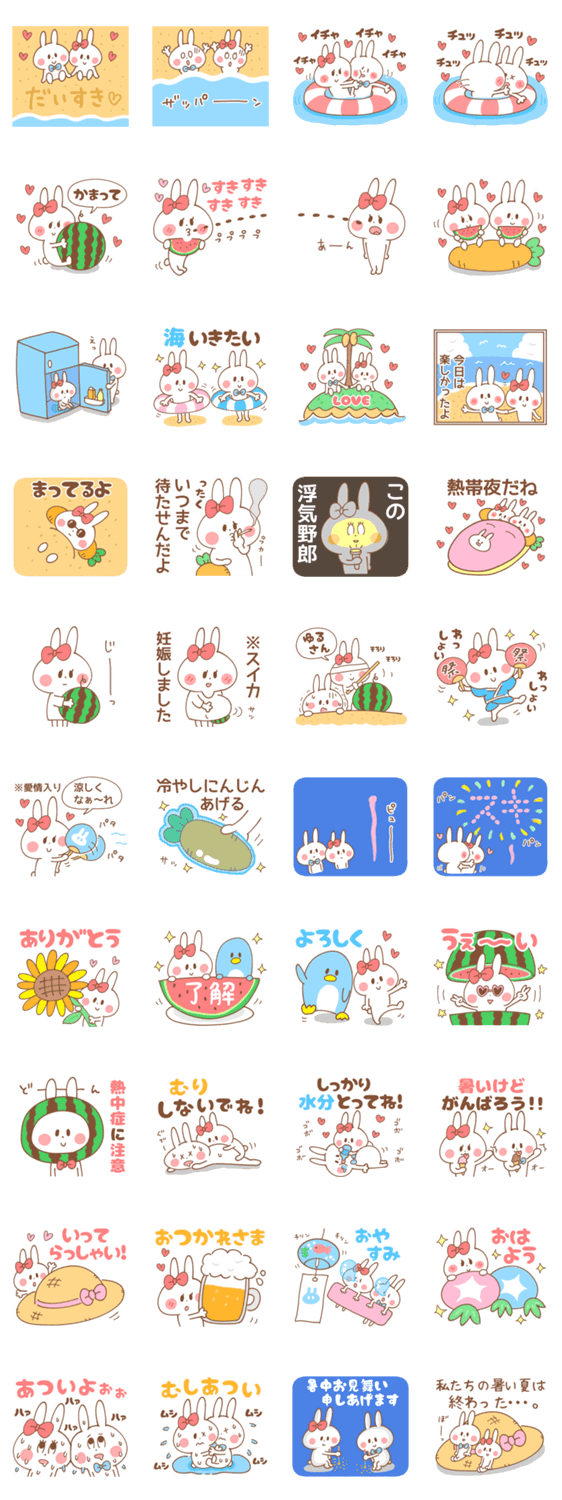 うさぎカップルの暑い夏【海・花火など】 -LINEスタンプマニア