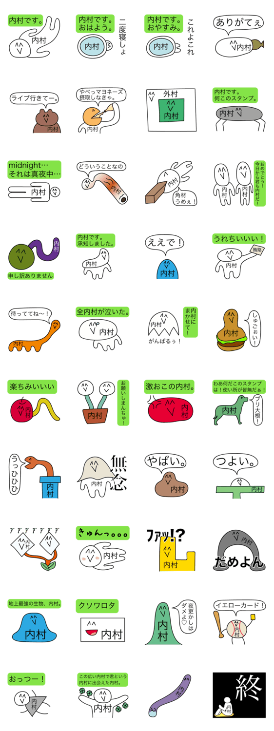 前衛的な内村のスタンプです。一生懸命つくりました。全国の内村さん、誠に申し訳ございません。