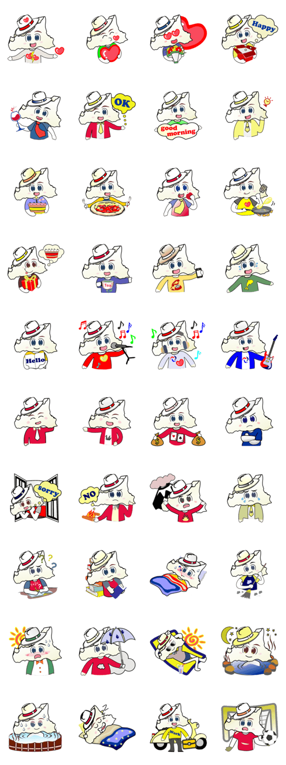 | スタンプ説明 | He is Kuchi from Italy (inspired by Sicily Island). He always wears a hat. 100% daily use. |