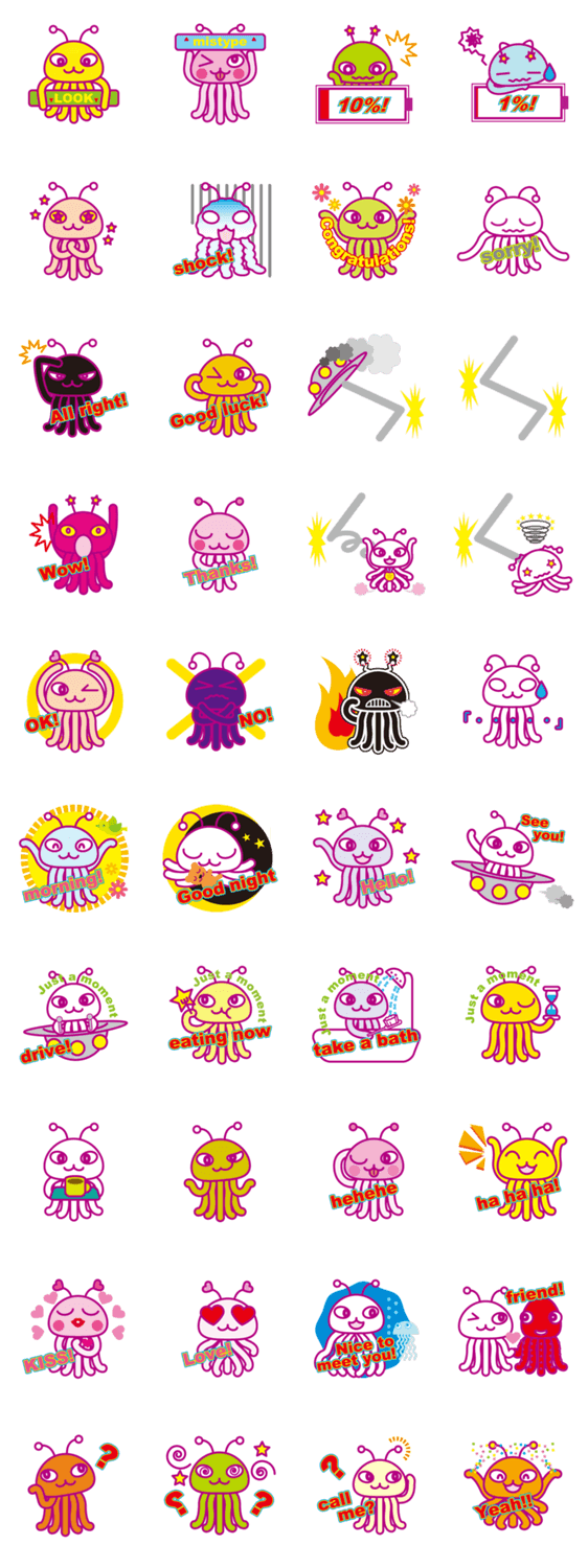 すべての地球人に送る、宇宙人ピースのスタンプ。使い方次第で新しいトークが広がります。