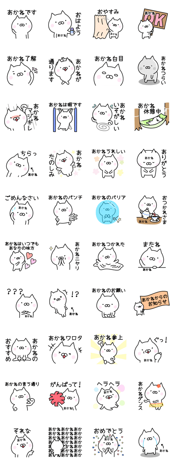 あかねさん、あかねちゃんが使いやすいお名前スタンプです。かわいいねこが、あかねさんの気持ちを表してくれています。あかねさんへのプレゼントにも最適です。