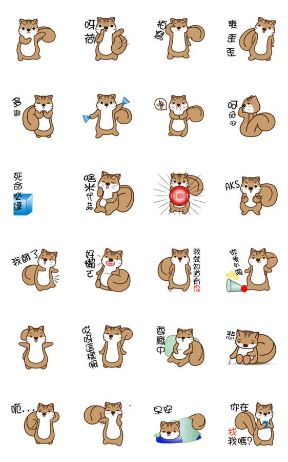| スタンプ説明 | Relaxed lazy squirrels are active |