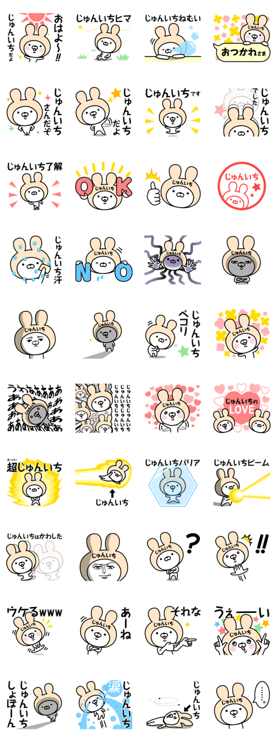 【じゅんいち】の名前うさぎ -LINEスタンプマニア