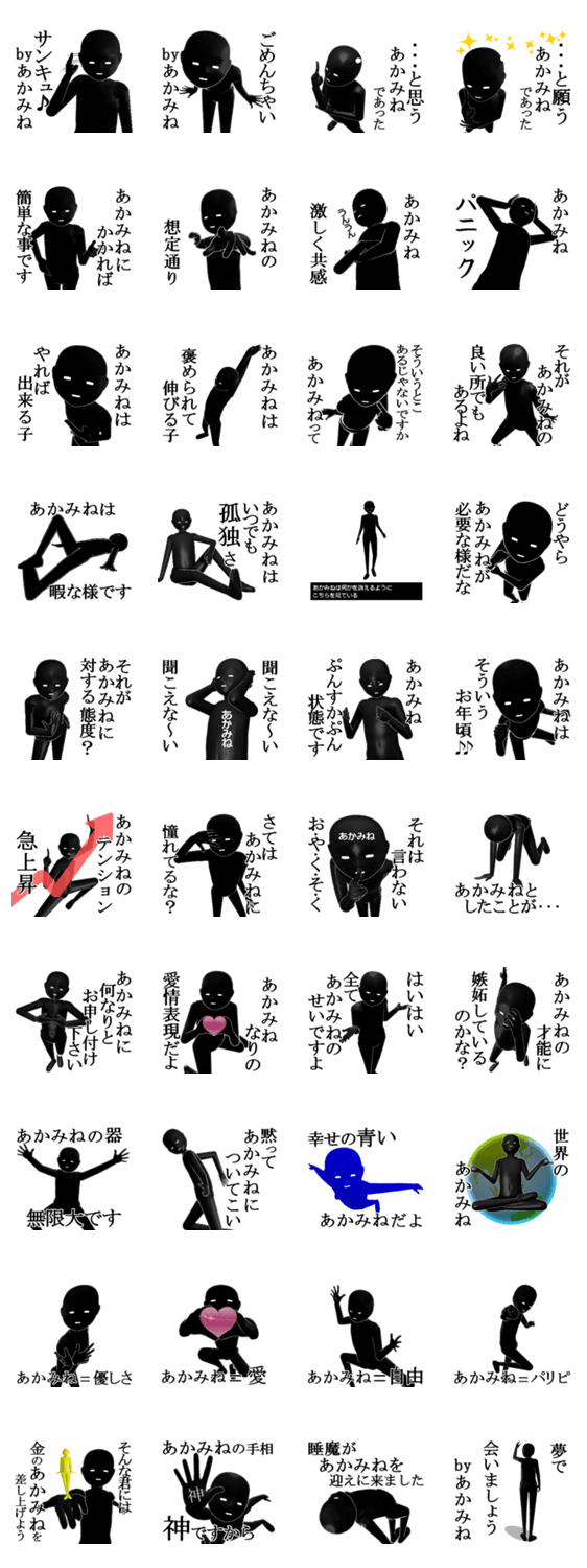 あかみねさんのあかみねさんによる、あかみねさんの為のスタンプです。名前/名字/あだ名シリーズ第2弾。癖強めです