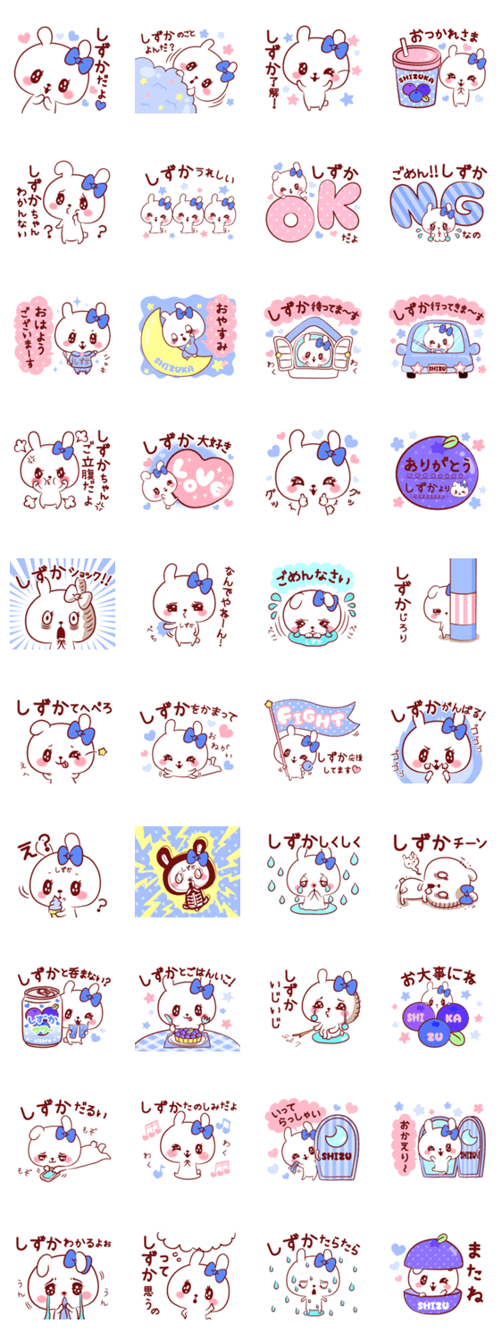 しずかちゃんが使う名前スタンプ。しずかのなまえの方どうぞ。愛嬌あるしずかちゃんスタンプでみんなにしずかちゃんのかわいらしさを伝えよう。