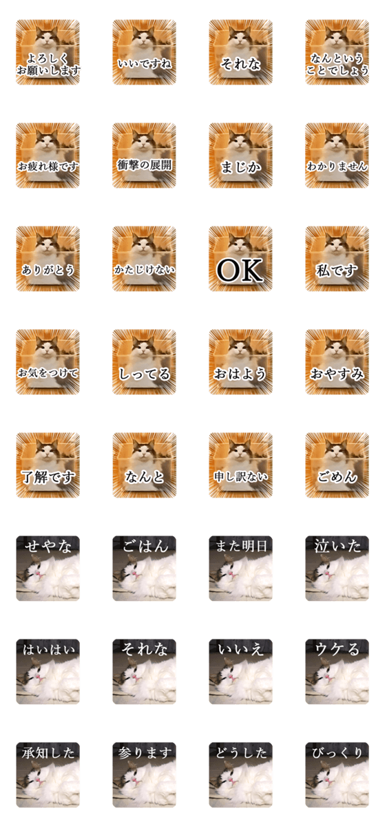 白ネコのあいうえお・・・ってるスタンプ