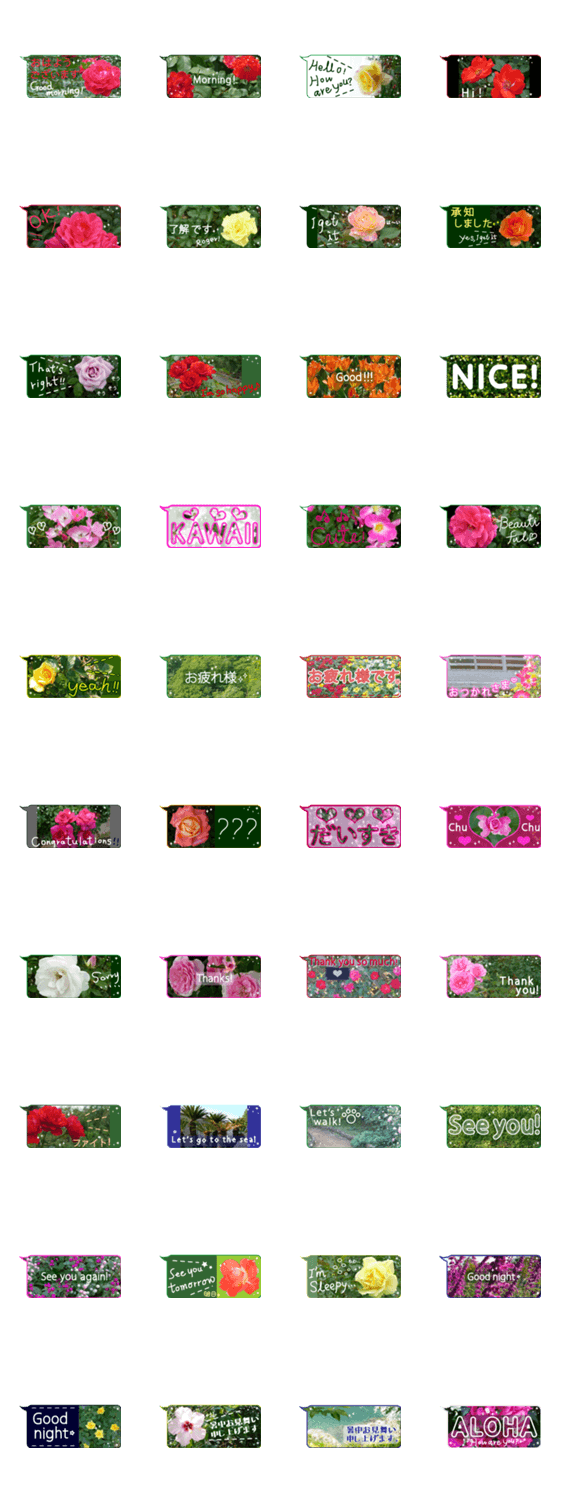 吹き出し付きのシンプルでクールかわいい、少し大人な花(植物)のスタンプです。美しい花で毎日にうるおいといやしを☆毎日使えるようなものが中心です。暑中お見舞い入り♪