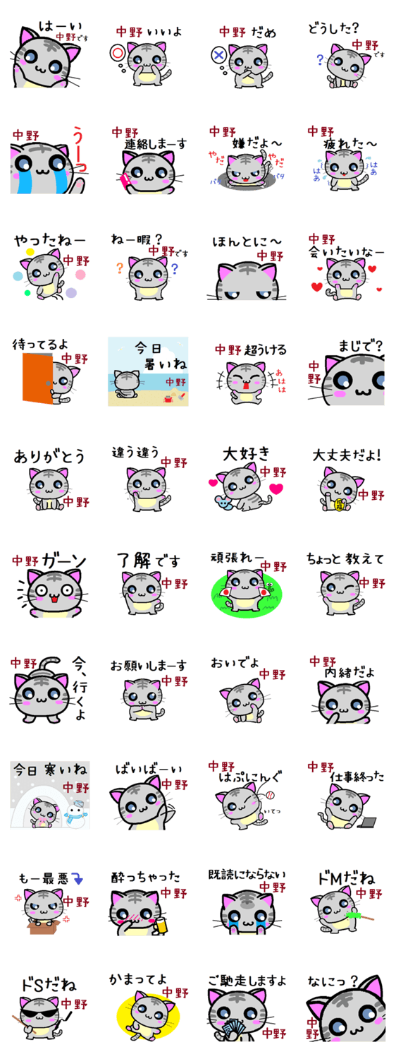 中野さんに使って欲しい可愛い猫のスタンプです。