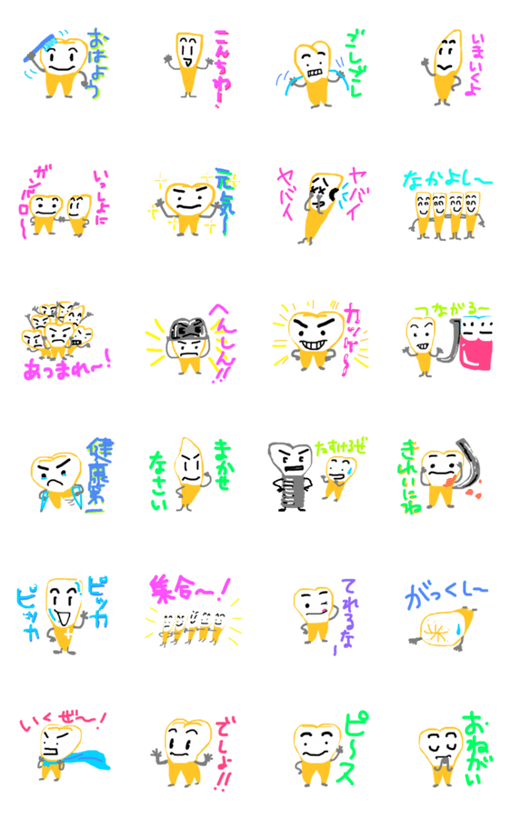 現役歯医者さんが描いたスタンプキャラクター。奥歯のQちゃんと その家族の会話。歯医者さん関係の人も そうでない人も 是非使って下さい。