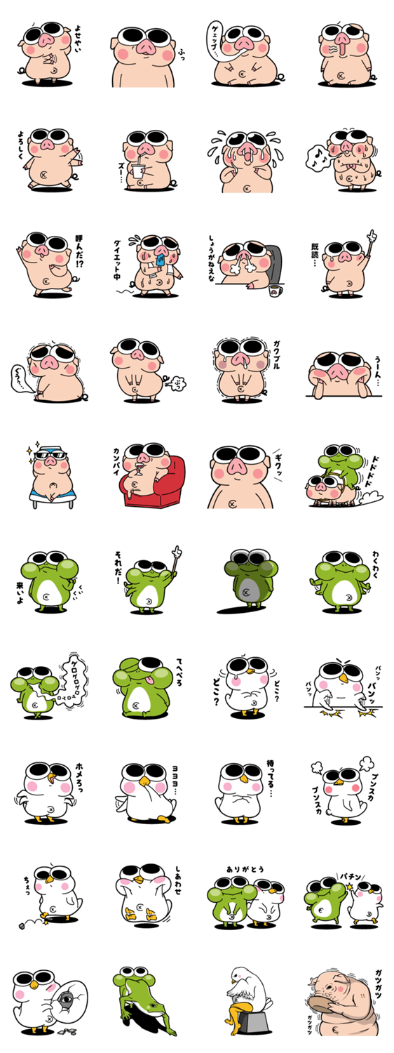 ぽっちゃりカエルとむっちりトリ3+ブタ大盛 -LINEスタンプマニア