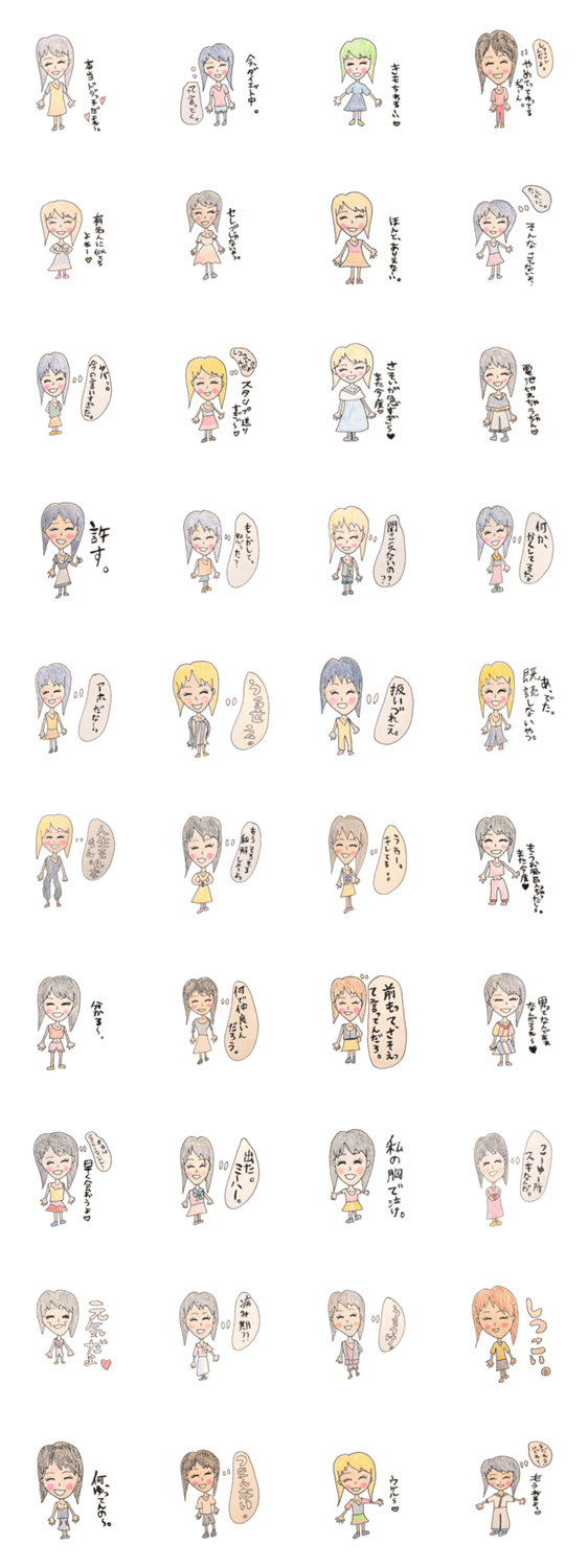 女の子達の心の声がスタンプになりました、是非仲良しな人におくってあげてください☆