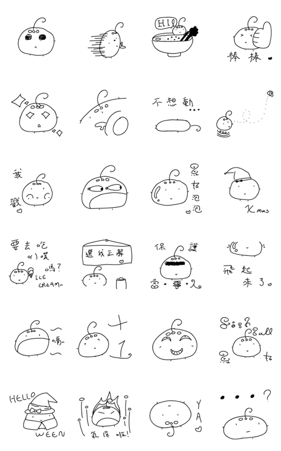 | スタンプ説明 | Fish ball is cute. Fish ball is always wears a bow. |
