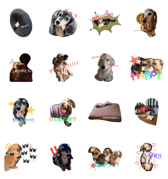 チャム、マロ、フク、メイによる癒されスタンプ。使うだけで癒やされます。