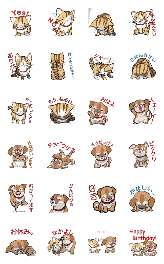 ねこの「みぃ」と、いぬの「ころ」のスタンプです。