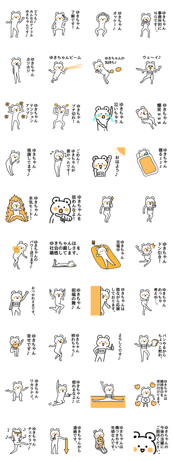 ゆき,ゆきえ,ゆきこ,ゆきな,ゆきの,ゆきよ,ゆきお,ゆきひろ,ゆきひこ,ゆきね,ゆきみ,ゆきひさ,ゆきや,さん 等 あだ名が ユキちゃん の人が使える 名前スタンプ です。