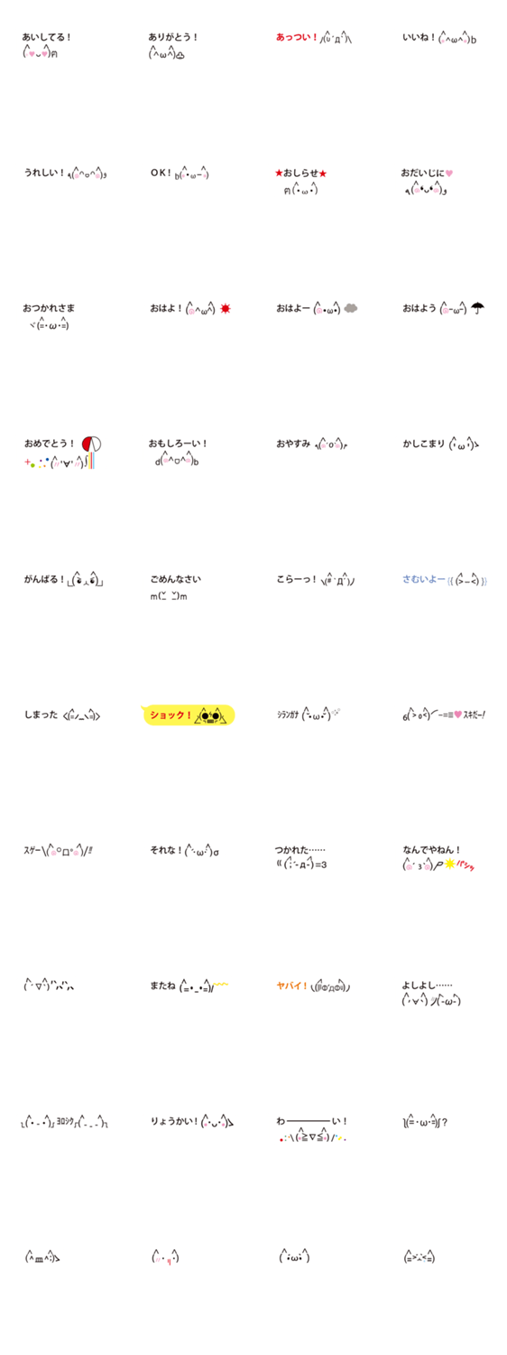猫の顔文字は可愛いけれど、実際に書くのは難しい。それを吹き出しの中に入れて,使いやすくしました。日常会話の中で、さりげなく使ってください