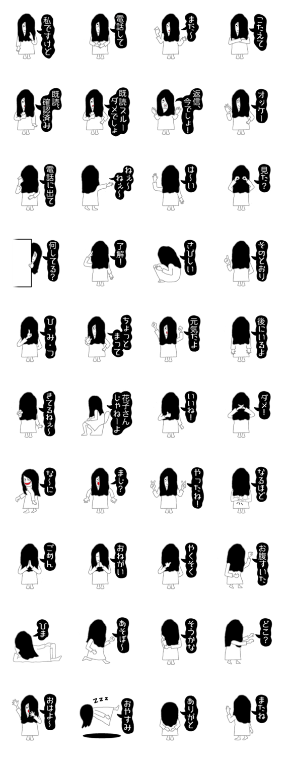 怖いけど見てみたい WHITE LADY (女性の幽霊)のスタンプです。