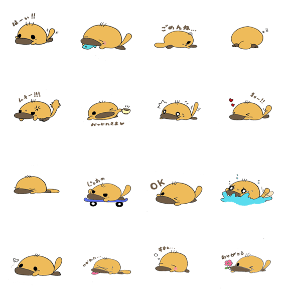 | スタンプ説明 | It is a Children platypus that can not swim. |